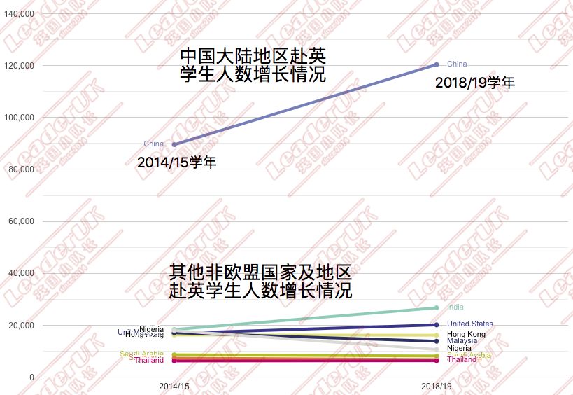2019/20年,来自非欧盟留学生总计408825名,其中有35%来自中国,中国留英学生比其他任何海外国家都多